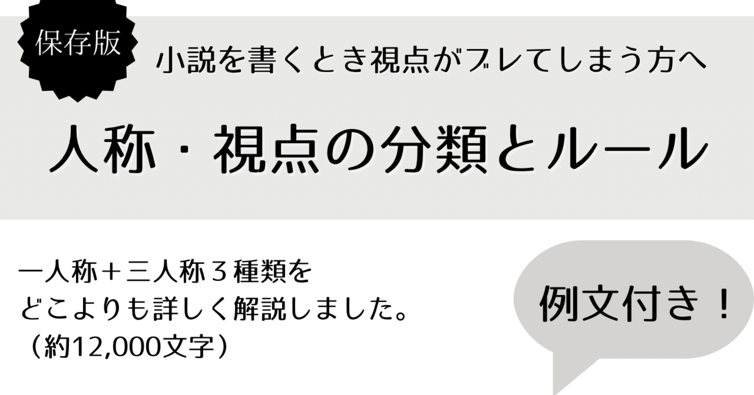 昨日、別アカウントよりアップした「人称視点の分類とルール」(約12,000文字)ですが、最後の例文まですべてを無料にいたしました。(以前ココナラで購入頂いた …